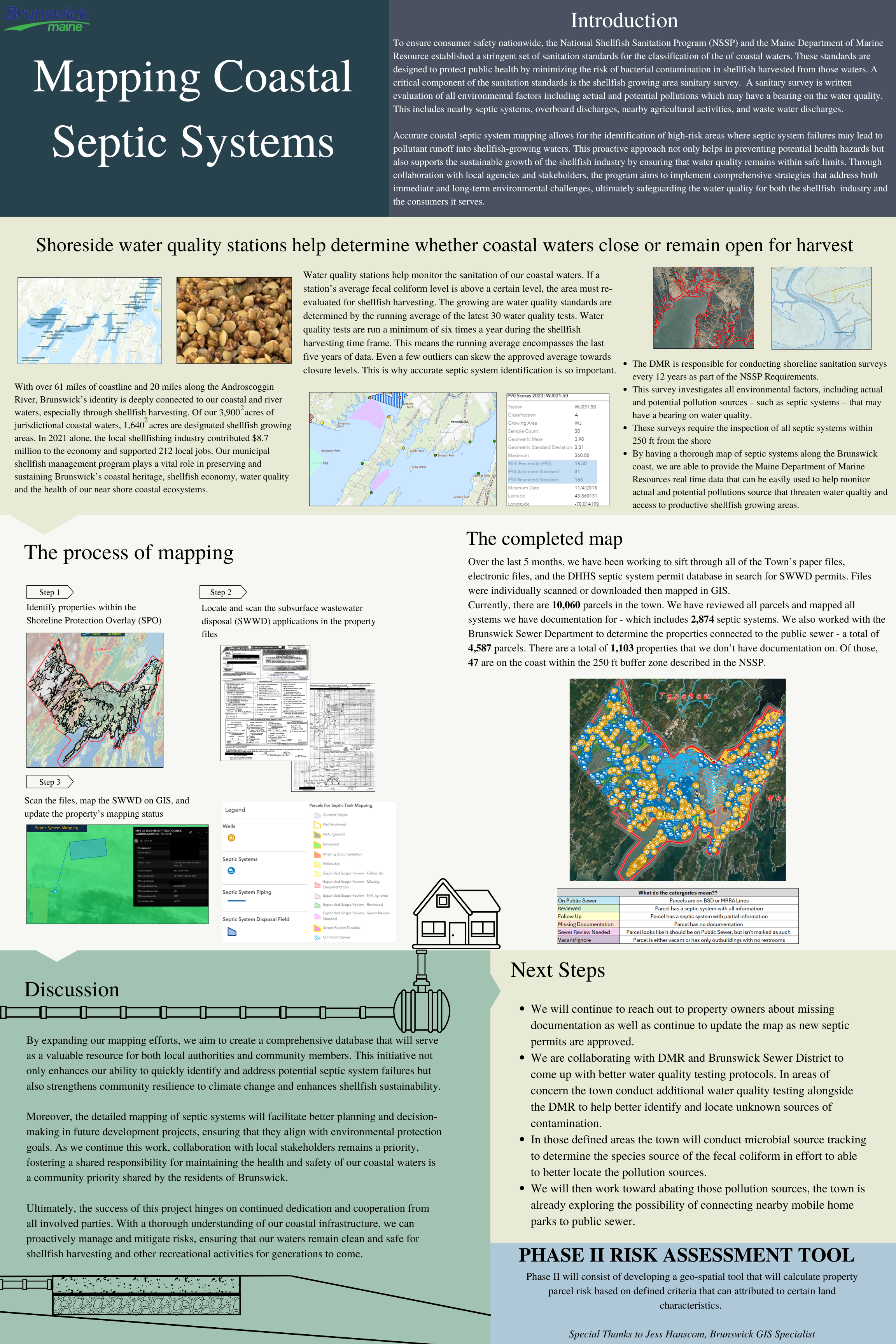 The Town of Brunswick Municipal Shellfish Management Program is overseen by the towns coastal resource manager. Brunswick has unique and progressive shellfish management program. The Town has approximately 1,600 acres of intertidal shellfish growing consisting of small bays and inlets along 61 miles of jagged coastline.
